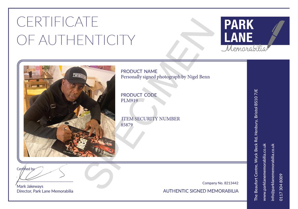 For dedicated fans and collectors, this piece stands as a centre piece of premium Nigel Benn memorabilia.  A dynamic visual narrative of a champion who helped define British boxing.
