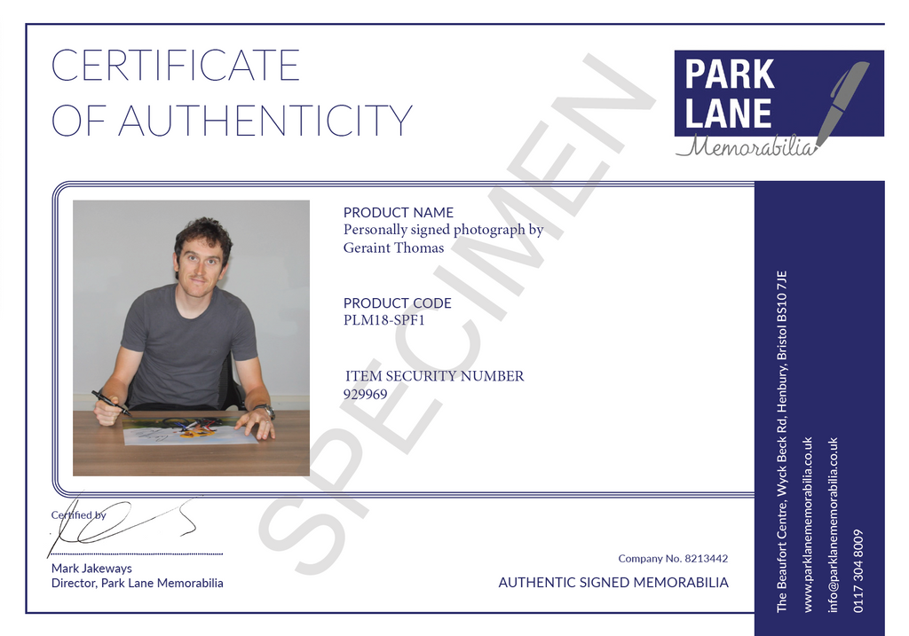Personally Hand Signed by Geraint Thomas