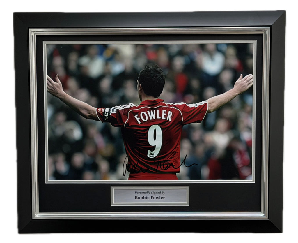Celebrate a true Liverpool icon with this stunning personally signed Robbie Fowler photograph, capturing the unforgettable moment he stands arms outstretched in front of the adoring Anfield crowd.
