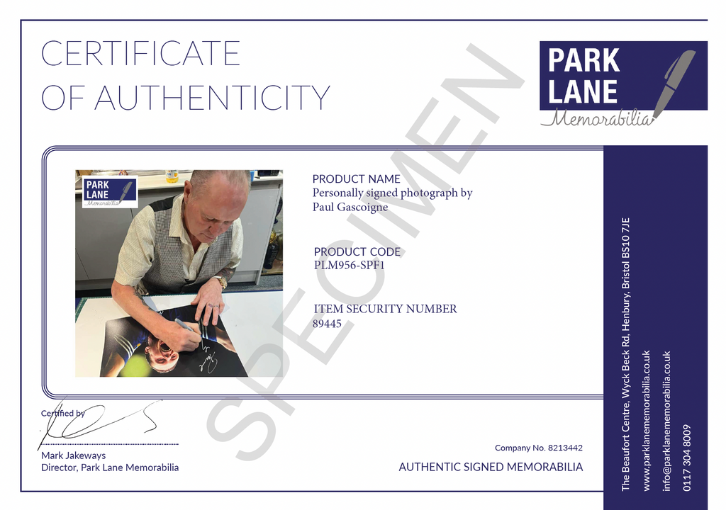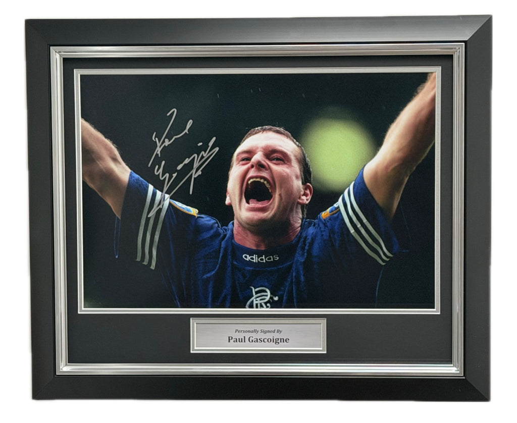 Personally Signed by Paul Gascoigne – A genuine autograph from a Rangers legend.