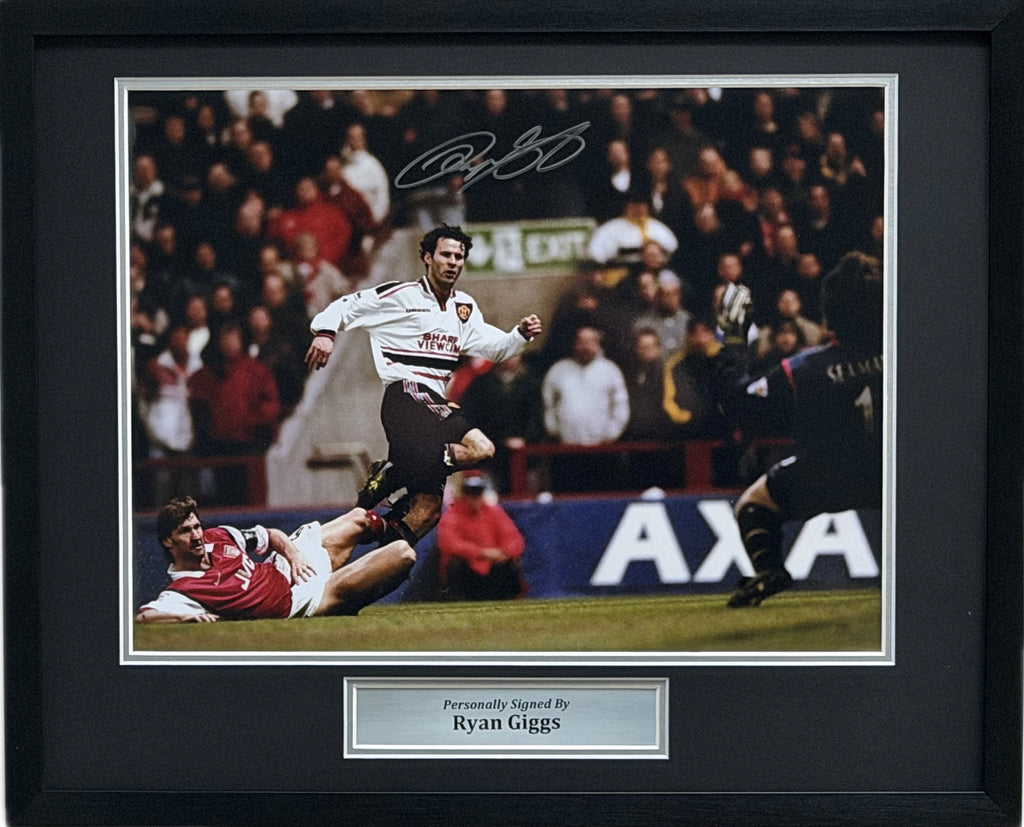 Celebrate the magic of Ryan Giggs’ unforgettable solo goal against Arsenal in the 1999 FA Cup semi-final with this incredible photograph, personally signed by the Manchester United legend.